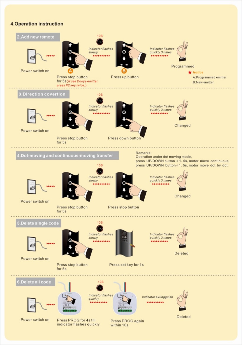 5:Cross-brand compatibility with **A-OK** and **DOOYA** transmitters